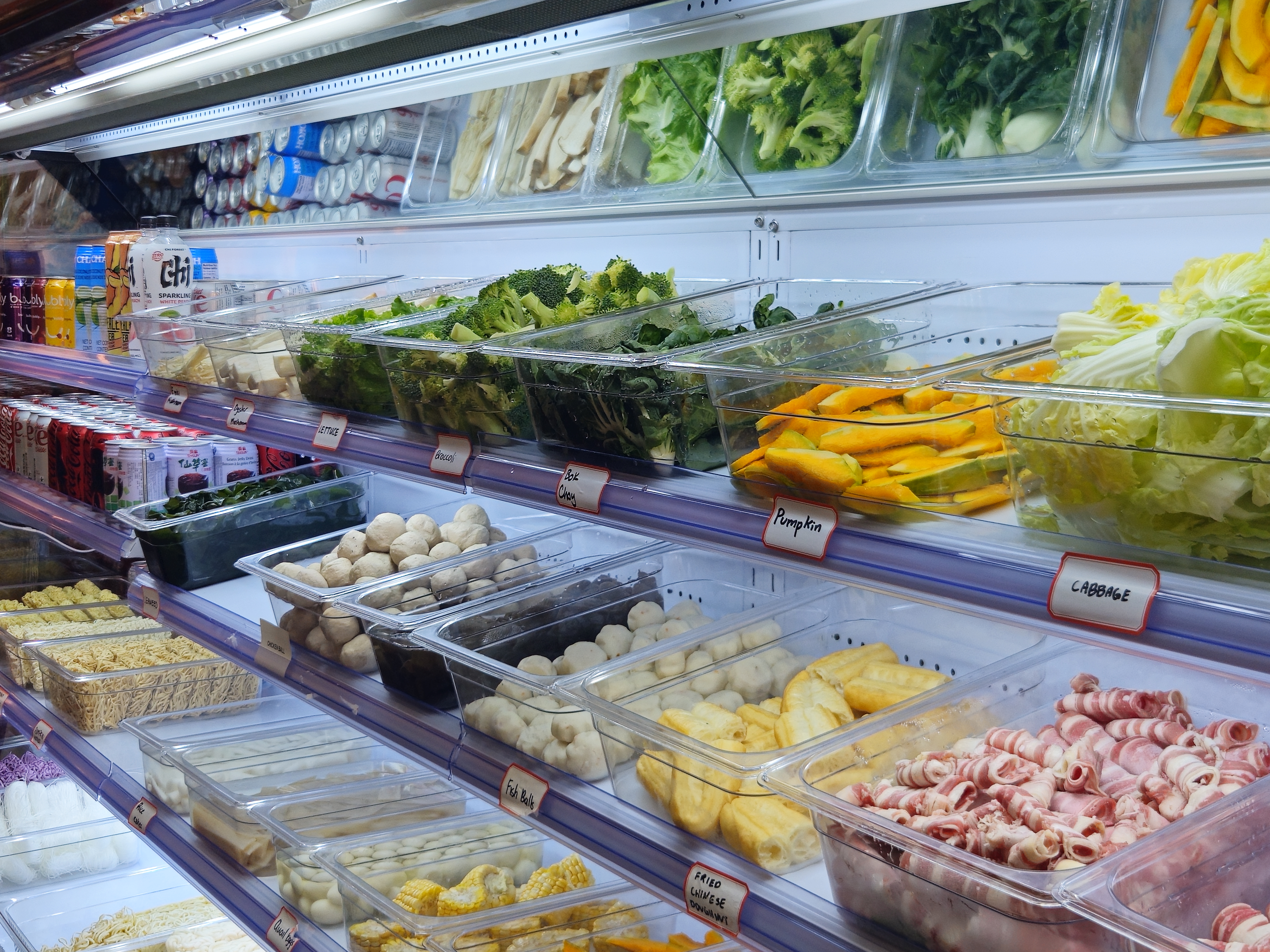 Choose from our fresh selection of meats, seafood, vegetables, and noodles.